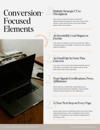 No fluff. No overwhelm. Just 25 strategic checkpoints to transform your website from pretty to profitable.